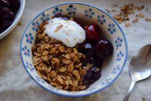 This delicious recipe from Montana Team Nutrition is a warm medley of cherries, blueberries and strawberries topped with oats, brown sugar and cinnamon. A great way to use frozen fruit in a dish kids will love!